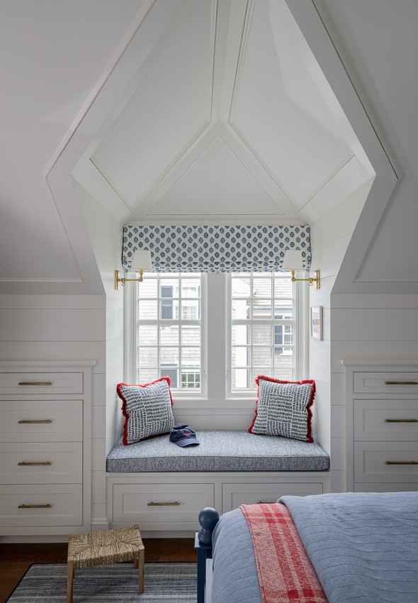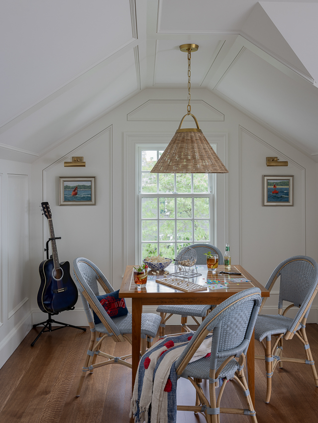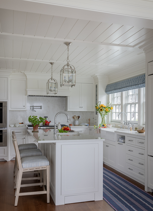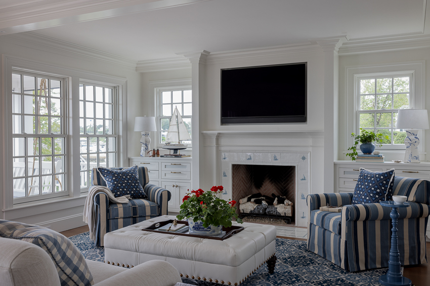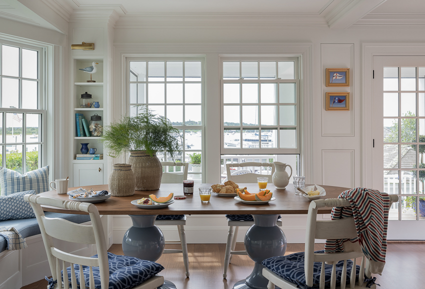 This new construction home was designed to look like it was always a part of the historic section of Edgartown in Martha’s Vineyard. The home blends the timeless charm of 19th century whaling captains’ residences with modern day comforts with colors and textures that speak to its harborside location.