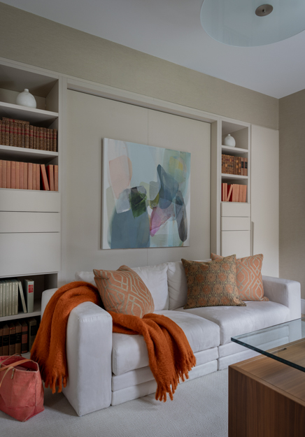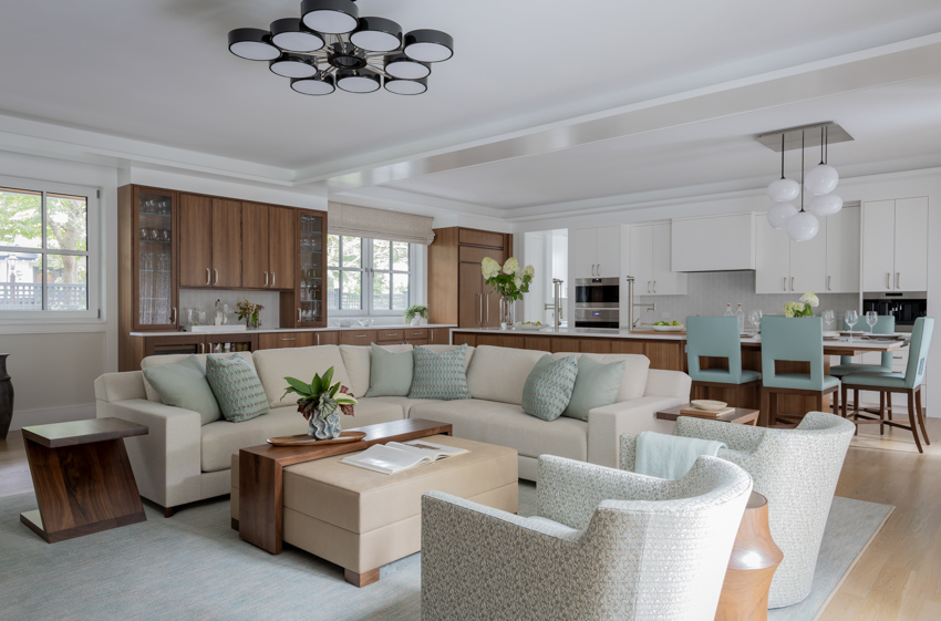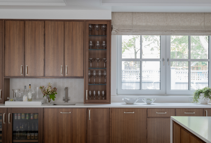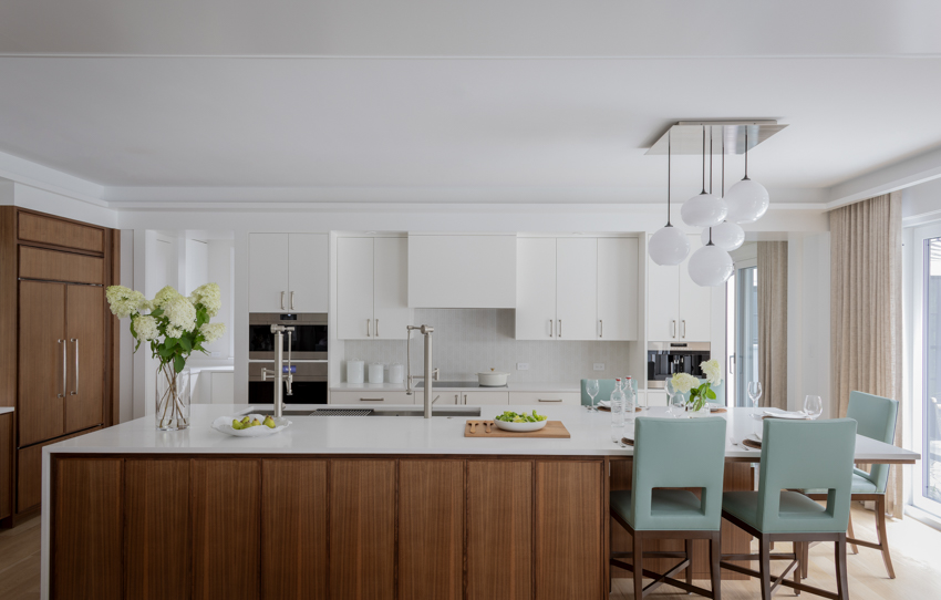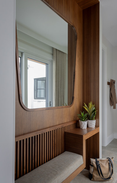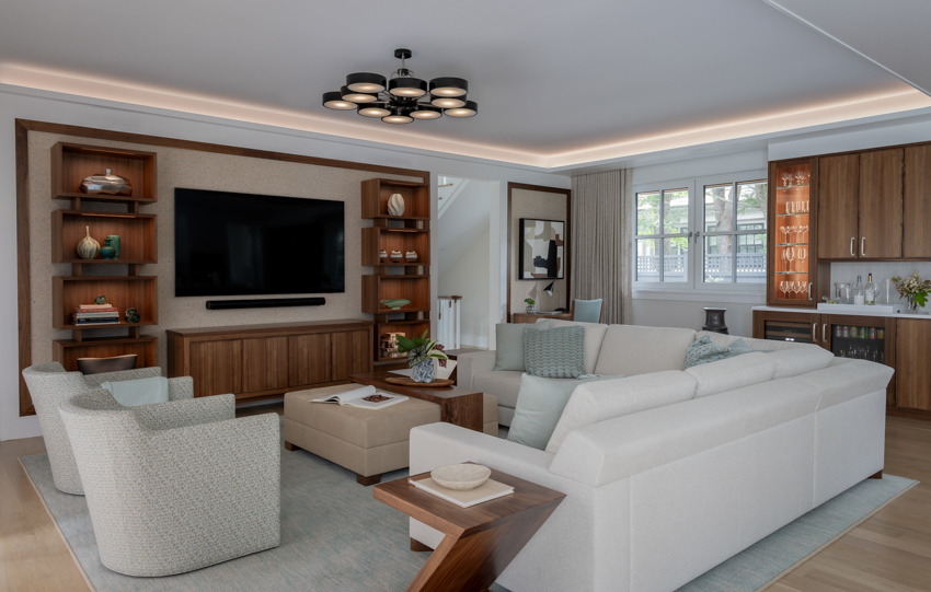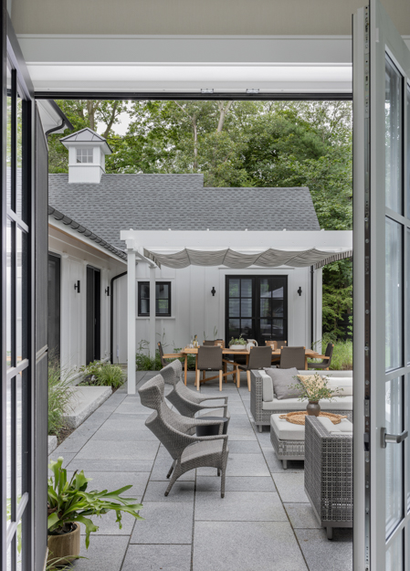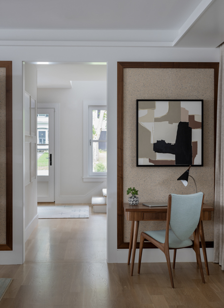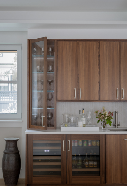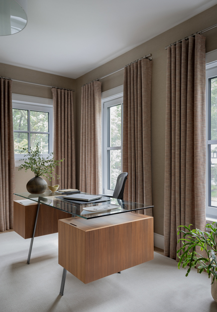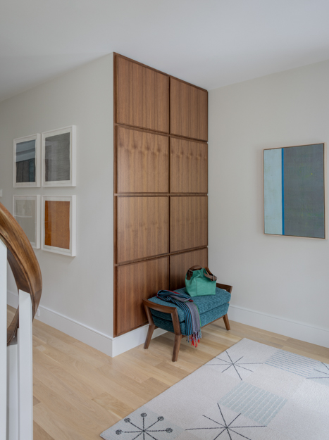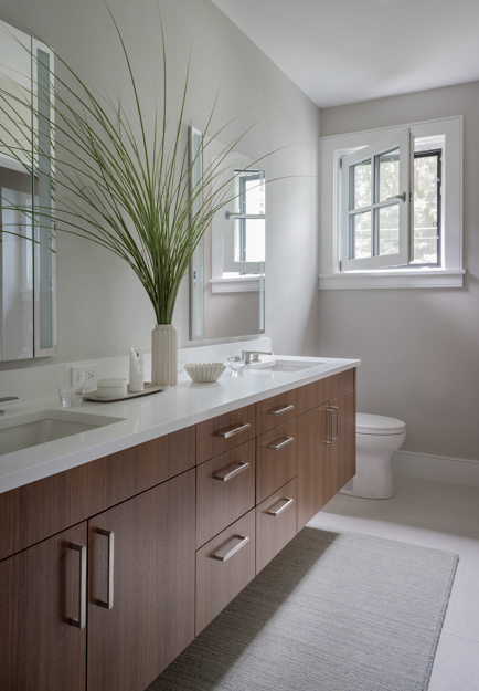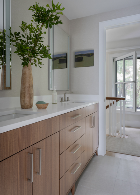 Filled with light and modern forms, the interior is bright and clean lined. The color palette, furnishings and custom millwork evoke a midcentury modern aesthetic. The space is efficient and comfortable for an empty nester couple with a fully inclusive first floor layout but expands its use with second floor bedrooms and baths to accommodate visiting family and guests. A south facing terrace and courtyard provides ample outdoor space for soaking in the sun and entertaining. Comfort and function are essential elements in this very beautiful home.