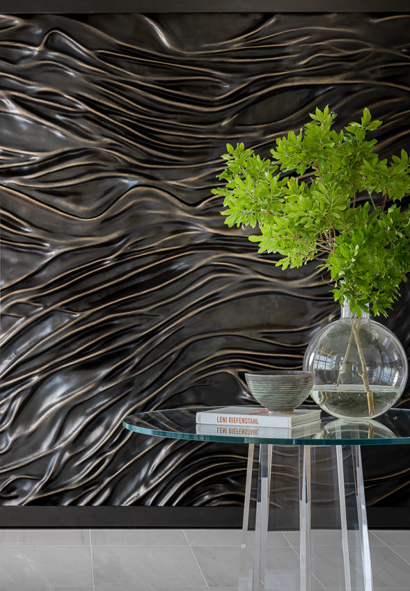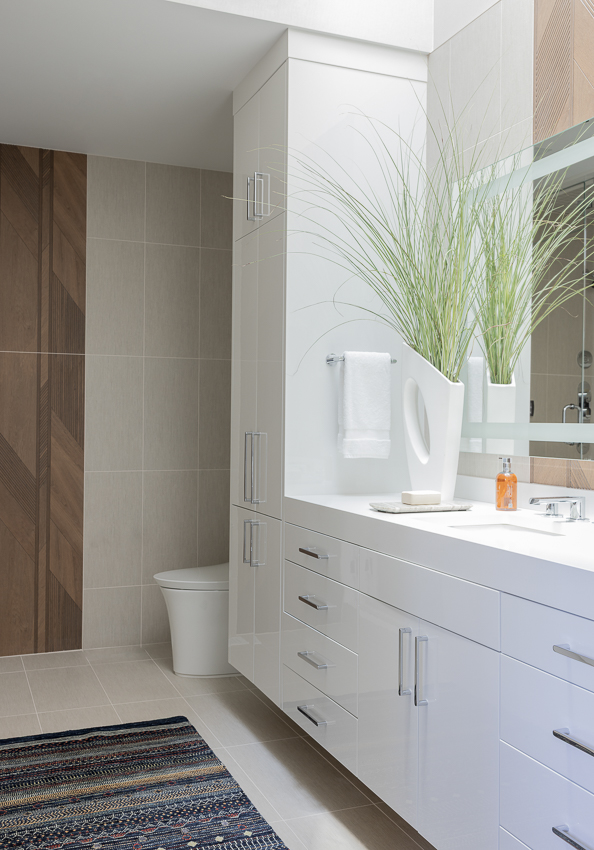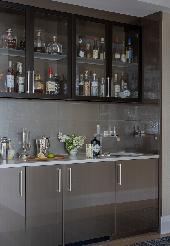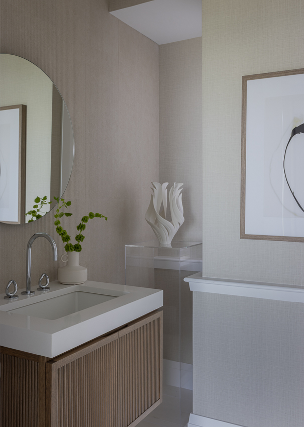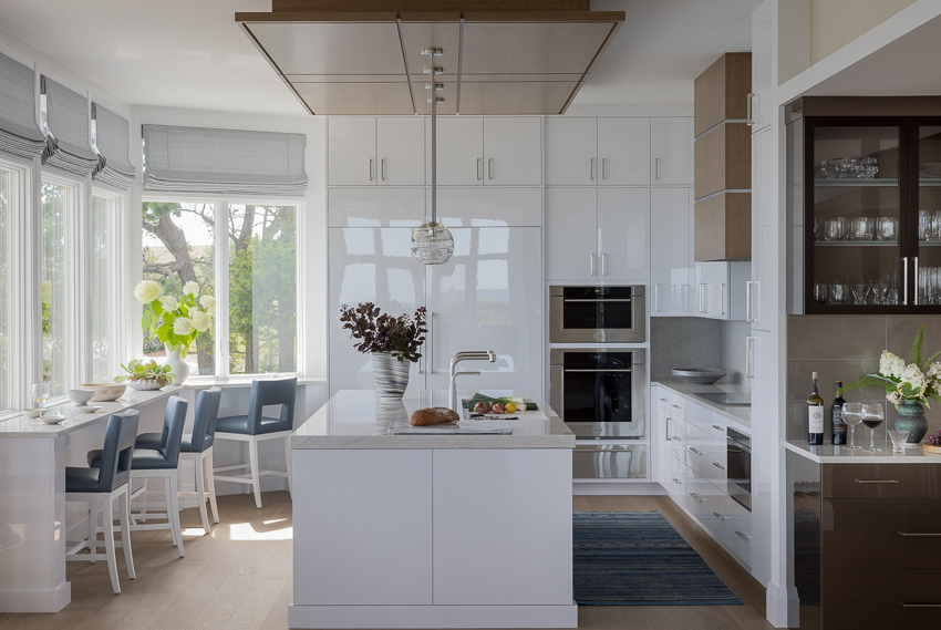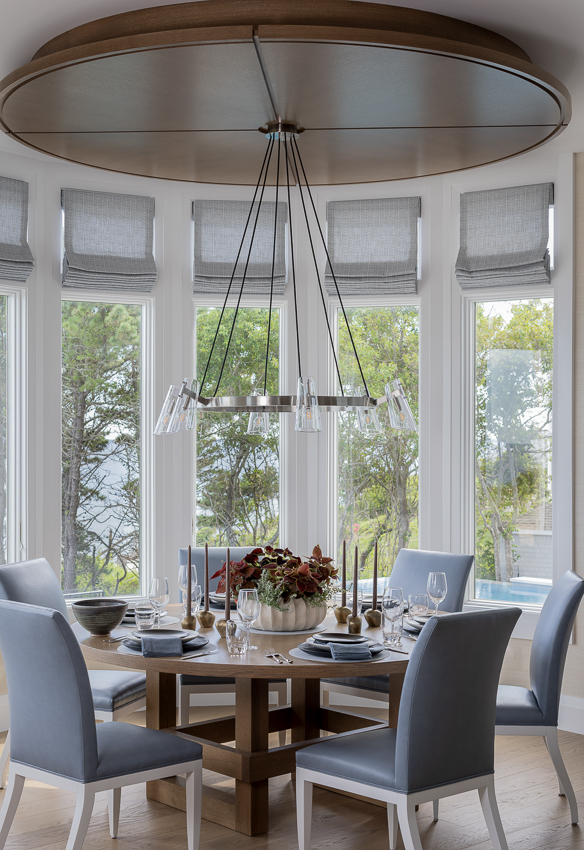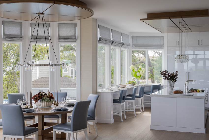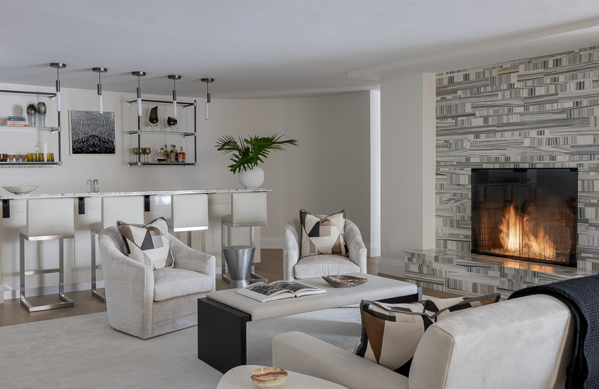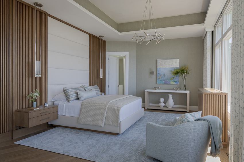 This oceanfront home’s views are priceless; however, after almost thirty years, the interiors were dated and drab. A total renovation using updated designs and materials includes a new kitchen and bathrooms as well as beautiful millwork feature walls and ceiling treatments and fabulous stone slabs. A new, open tread staircase replaces the original curved design. The contemporary furniture, area rugs, wall coverings and accessories create a sophisticated and comfortable seaside retreat.